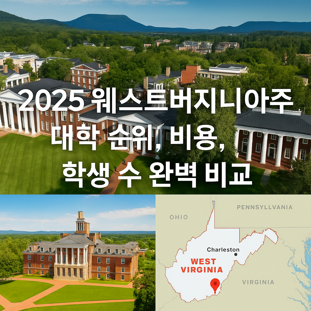 웨스트버지니아주는 아팔래치아 산맥의 아름다운 자연과 실용적인 교육이 어우러진 대학들로 가득합니다. 공학, 에너지, 의료 분야에서 두각을 나타내며, 실무 중심 커리어를 꿈꾸는 학생들에게 매력적인 선택지입니다. 이 글에서는 2025년 기준 주요 대학의 순위, 등록금, 생활비, 학생 수, 강점, 인기 전공을 꼼꼼히 비교했습니다. 순위는 U.S. News 2024-2025년도 데이터를 기반으로 했으며, 등록금과 생활비는 2024-2025년도 기준(일부 2025년 추정치 포함) 비거주자 기준입니다. 학생 수는 2022-2023년도 데이터를 참고했으며, 2025-2026년도 최신 정보는 대학 웹사이트에서 확인하세요!